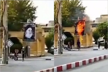 Məlumata görə, sentyabrın 23-də cümə namazından sonra qəzəbli sakinlərdən biri Ruhullah Xomeyninin evinin qarşısında asılan plakatına od vurub.