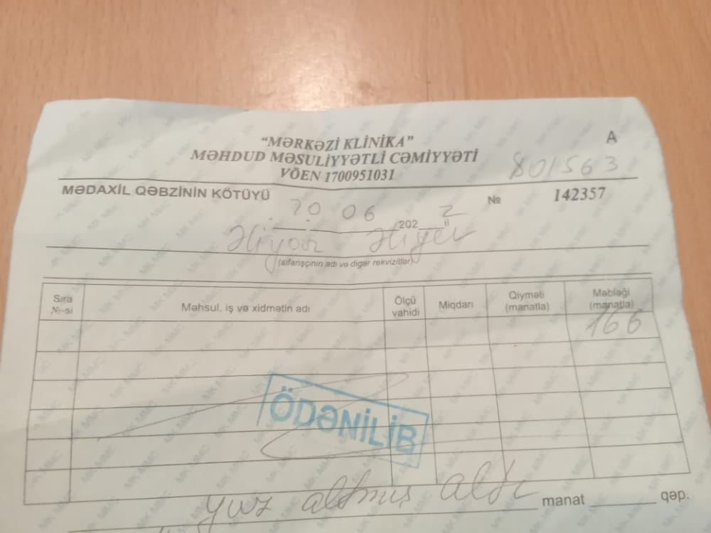 26 sen202209:26 236 Tel:+99450 352 82 91 E-mail: turkdunyasi.az@mail.ru yuxarı Bərdə rayon sakini Mərkəzi klinikanın həkimi Lalə Əliyeva dan pulunu ala bilmir-FotoVideo+Fakt 26 sen, 202209:26 12236 Qarşı: tərəfin də mövqeyini işıqlandırmağa hazırıq.
