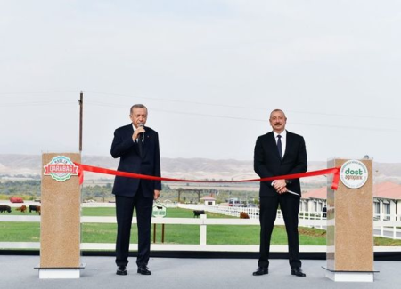 Azərbaycan Respublikasının Prezidenti İlham Əliyev və Türkiyə Respublikasının Prezidenti Rəcəb Tayyib Ərdoğan Zəngilan rayonunda “Dost Aqropark” ağıllı kənd təsərrüfatı kompleksinin birinci mərhələsinin açılışında iştirak ediblər.