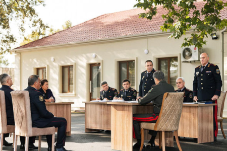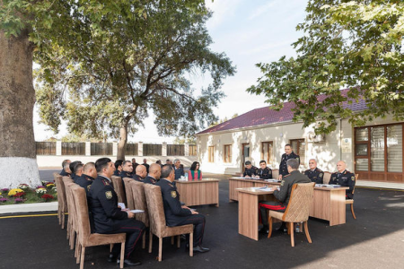 Daha sonra general-polkovnik V.Eyvazov bölgə üzrə polis orqanlarında sıravi və kiçik rəis heyətinə xidmətə qəbulla bağlı sıra baxışı keçirib.