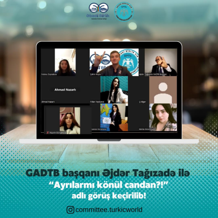 "Əbədi Birlik" Gənclər İctimai Birliyi və “Əbədi Birlik” Türk dünyasının təşkilatçılığı ilə "Ayrılarmı könül candan?!" mövzusunda Zoom platformasında görüş keçirilib.