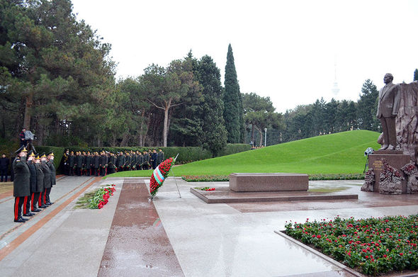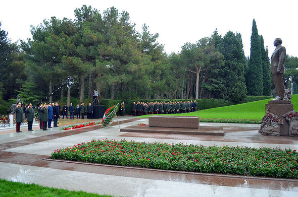 Ulu öndərin məzarı önünə əklil və gül dəstələri qoyulub, xatirəsi hörmət və ehtiramla yad edilib.