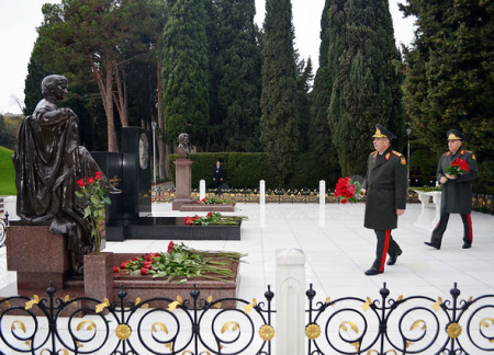 Müdafiə Nazirliyinin rəhbər heyəti Fəxri xiyabanı ziyarət edib - FOTO