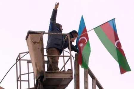 Həmçinin Xankəndi yolunun üzərinə Azərbaycan bayraqları asılıb.