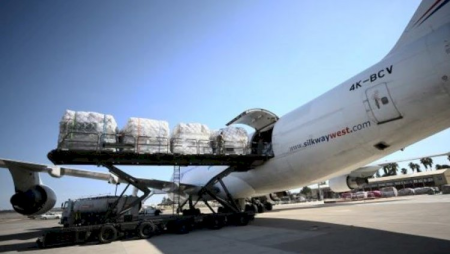 Qeyd edilib ki, humanitar yardım Türkiyəyə 15 təyyarə və 350 yük avtomobili vasitəsilə çatdırılıb.
