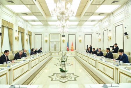 İki ölkə arasında iqtisadi, ticarət, mədəni, humanitar sahələrdə əlaqələrin inkişaf etdiyini deyən Prezident Sadır Japarov qarşılıqlı ticarət dövriyyəsinin artırılmasının vacibliyini qeyd edib.