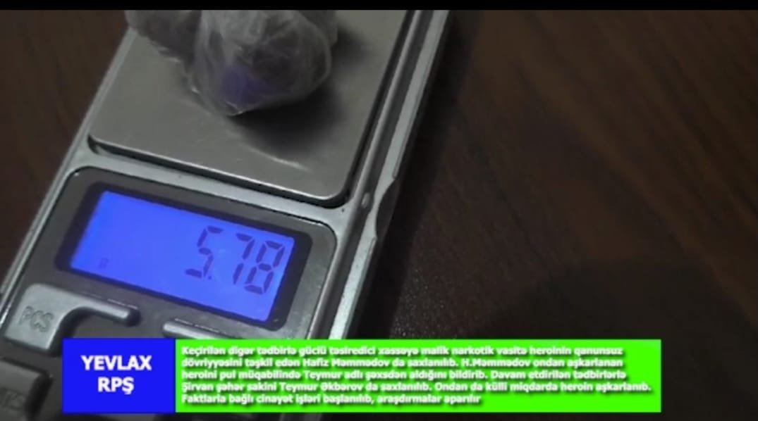 Keçirilən digər tədbirlə güclü təsiredici xassəyə malik narkotik vasitə heroinin qanunsuz dövriyyəsini təşkil edən Hafiz Məmmədov da saxlanılıb. H.Məmmədov ondan aşkarlanan heroini pul müqabilində Teymur adlı şəxsdən aldığını bildirib. Davam etdirilən tədbirlərlə Şirvan şəhər sakini Teymur Əkbərov da saxlanılıb. Ondan da külli miqdarda heroin aşkarlanıb.