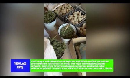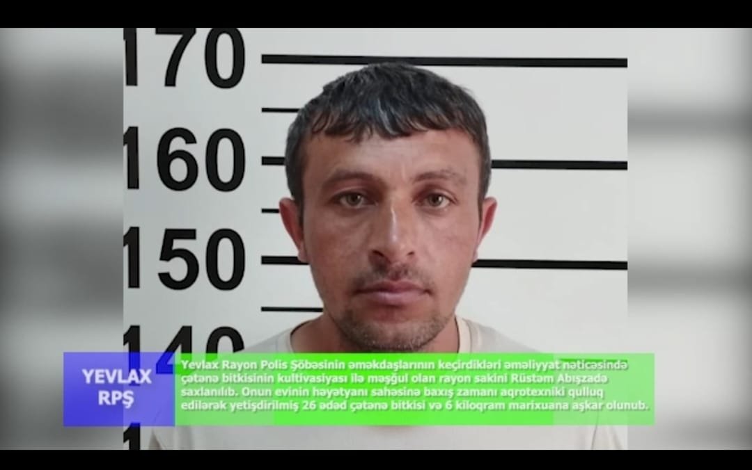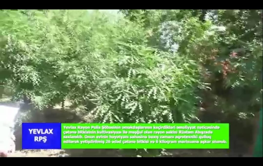 DİN-in Mətbuat Xidmətinin Bərdə regional qrupundan Turkdünyasi.az-a verilən məlumata görə, Yevlax Rayon Polis Şöbəsinin əməkdaşlarının keçirdikləri əməliyyat nəticəsində çətənə bitkisinin kultivasiyası ilə məşğul olan rayon sakini Rüstəm Abışzadə saxlanılıb. Onun evinin həyətyanı sahəsinə baxış zamanı aqrotexniki qulluq edilərək yetişdirilmiş 26 ədəd çətənə bitkisi və 6 kiloqram marixuana aşkar olunub.