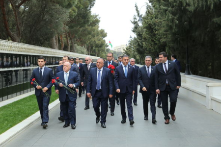 Sahibkarlar həmçinin, Şəhidlər xiyabanında Azərbaycanın müstəqilliyi və ərazi bütövlüyü uğrunda canlarından keçmiş qəhrəmanlarımızın xatirəsini ehtiramla yad edib, “Əbədi Məşəl” kompleksinə əklil qoyublar.