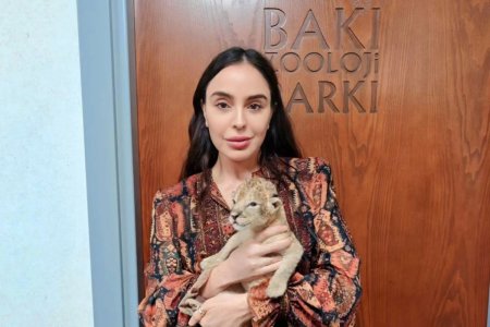 Leyla Əliyeva zooparkda yeni dünyaya gələn şir balası ilə görüntülərini paylaşdı