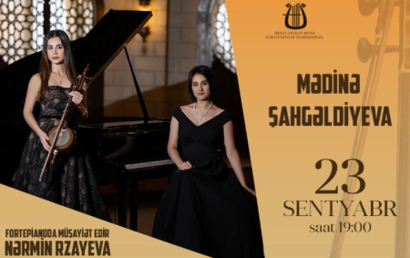 23 sentyabr saat 19:00-da Fikrət Əmirov adına Gəncə Dövlət Filarmoniyasında gənc kamança ifaçısı, respublika və beynəlxalq müsabiqələr laureatı Mədinə Şahgəldiyevanın “Ruhun qidası” adlı konserti baş tutacaq
