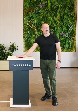 Sonra "Tabaterra" MMC-nin direktoru Elman Cavanşir dövlətimizin başçısına müəssisə barədə məlumat verdi.