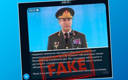 Bir sıra sosial şəbəkə hesablarında Azərbaycanın daxili işlər naziri adından Azərbaycan Prezidentinin açıqlamalarına dair həqiqətə uyğun olmayan saxta şərh yayılıb.