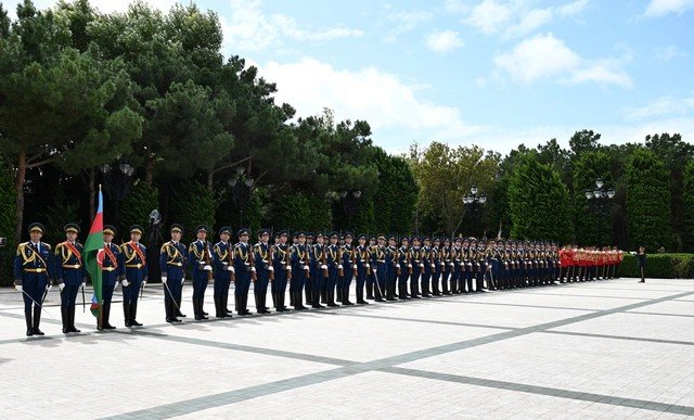 Fəxri qarovul dəstəsi hərbi marşın sədaları altında Azərbaycan Prezidenti İlham Əliyevin və Ruanda Prezidenti Pol Kaqamenin qarşısından keçib.