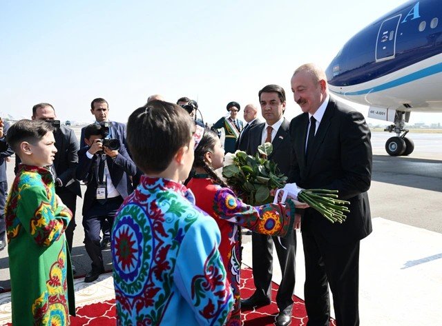 Turkdunyasi.az AZƏRTAC-a istinadən xəbər verir ki, Düşənbə Beynəlxalq Aeroportunda dövlətimizin başçısının şərəfinə fəxri qarovul dəstəsi düzülüb.