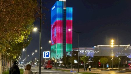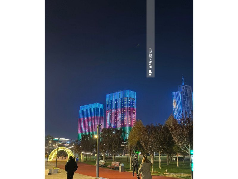 Daşkəndin küçələrində binalar üzərində Azərbaycan bayrağı proyeksiya olundu
