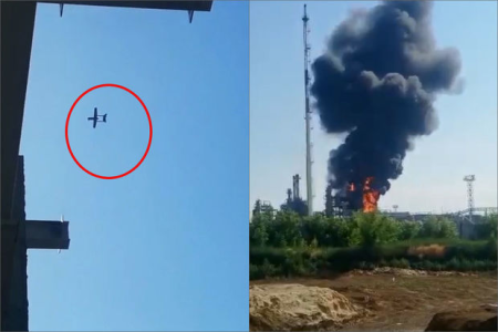 Rusiyada neft emalı zavoduna dronla hücum oldu - ANBAAN VİDEO