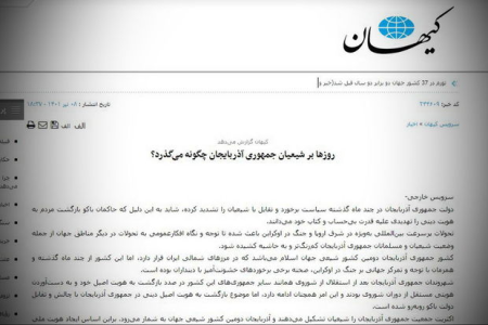 İranın ali dini rəhbəri Əli Xameneyinin ofisinin mətbuat orqanı sayılan “Keyhan” qəzeti Azərbaycan Respublikası ilə bağlı daha bir təxribat xarakterli məqalə dərc edib.