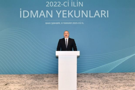 İlham Əliyev ötən ilin idman yekunlarına həsr olunmuş mərasimdə iştirak edib