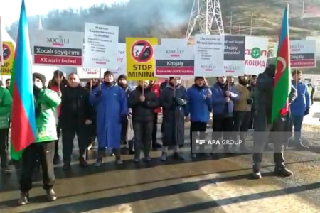Bu gün Laçın-Xankəndi yolunda davam edən aksiyada Xocalı faciəsinin ildönümü ilə bağlı şüarlar səsləndirilib.