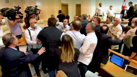 “Xalqın gücü” hərəkatının üzvü Viktor Caparidze müxalifətdən olan deputatları agent adlandırıb. Bundan sonra müstəqil deputat Tariel Nakaidze ona qarşı nalayiq sözlər işlədib. Daha sonra deputatlar biri-birlərinə fiziki güc tətbiq ediblər.