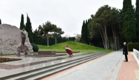Prezident İlham Əliyev Ulu Öndərin məzarı önünə əklil qoyub.