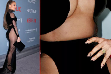 52 yaşlı Lopez “Tribeca” film festivalı çərçivəsində “Halftime” adlı sənədli filmin galasında şəffaf hissələri olan qara libas geyinib.