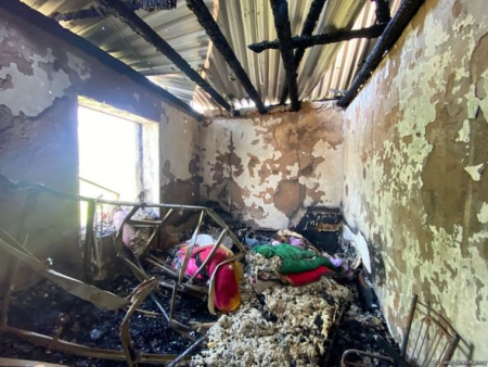 Bərdədə şəhid ailəsinin evi yandı - FOTO