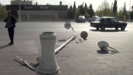 Bir neçə saat davam edən güclü külək elektrik təsərrüfatına da ziyan vurub. Elektrik dirəkləri aşıb, xətlər isə qırılıb.