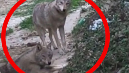 Oynamaq üçün hasara çıxan məktəblilər qəfil qapalı olan köhnə bir tikilinin həyətində canavarların sərbəst şəkildə gəzişdiyini görüblər. Uşaqlardan biri canavarları kameraya çəkməyi unutmayıb.