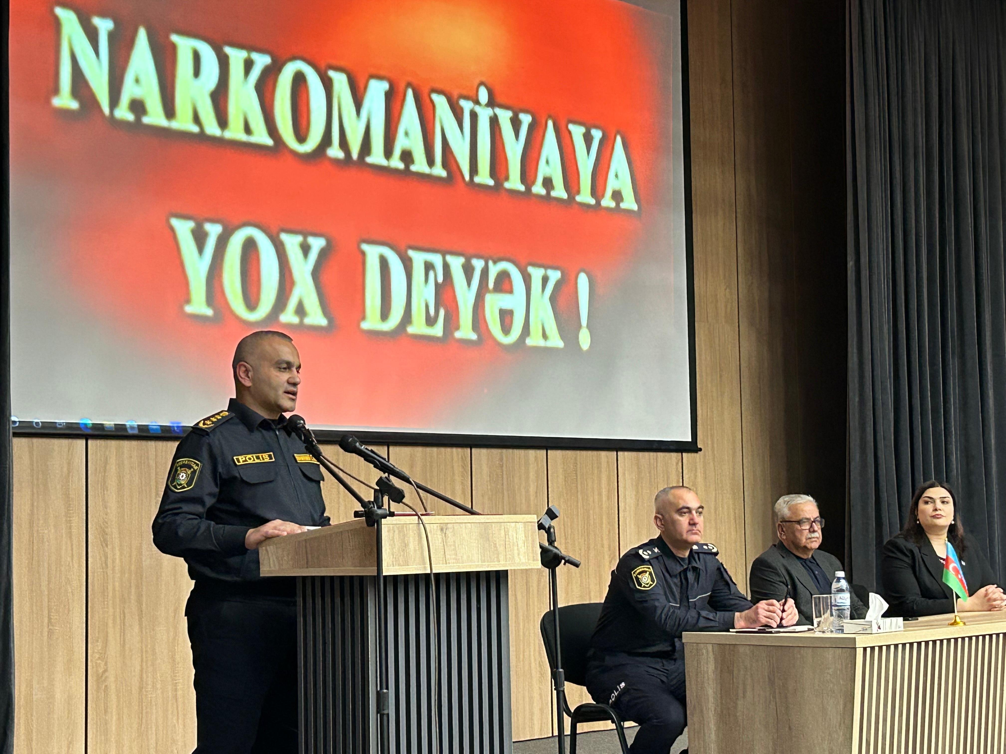 Tədbirdə çıxış edən RPŞ-nin rəisi, polis polkovniki Səməd Məhərrəmov narkotik vasitələrin insan sağlamlığı, düşüncə qabiliyyəti üçün törətdiyi zərərlərdən söhbət açıb. O, narkomaniya aludəçisi olanların fiziki və mənəvi olaraq uçuruma yuvarlanması, doğmaları üçün problemlər yaratmasından danışıb. Gənclərə mütləq şəkildə sağlam həyat tərzi keçirmələri, mütəmadi şəkildə mütaliə ilə məşğul olmaları tövsiyə edilib. Daha sonra çıxış edənlər də narkotik asılılığın cəmiyyət üçün doğurduğu təhlükələrdən danışıblar. Həmçinin Polis Akademiyasında oxumaq arzusunda olan şagirdlərə burada yaradılan yüksək şəraitdən və təhsilin keyfiyyətindən ətraflı bəhs olunub.